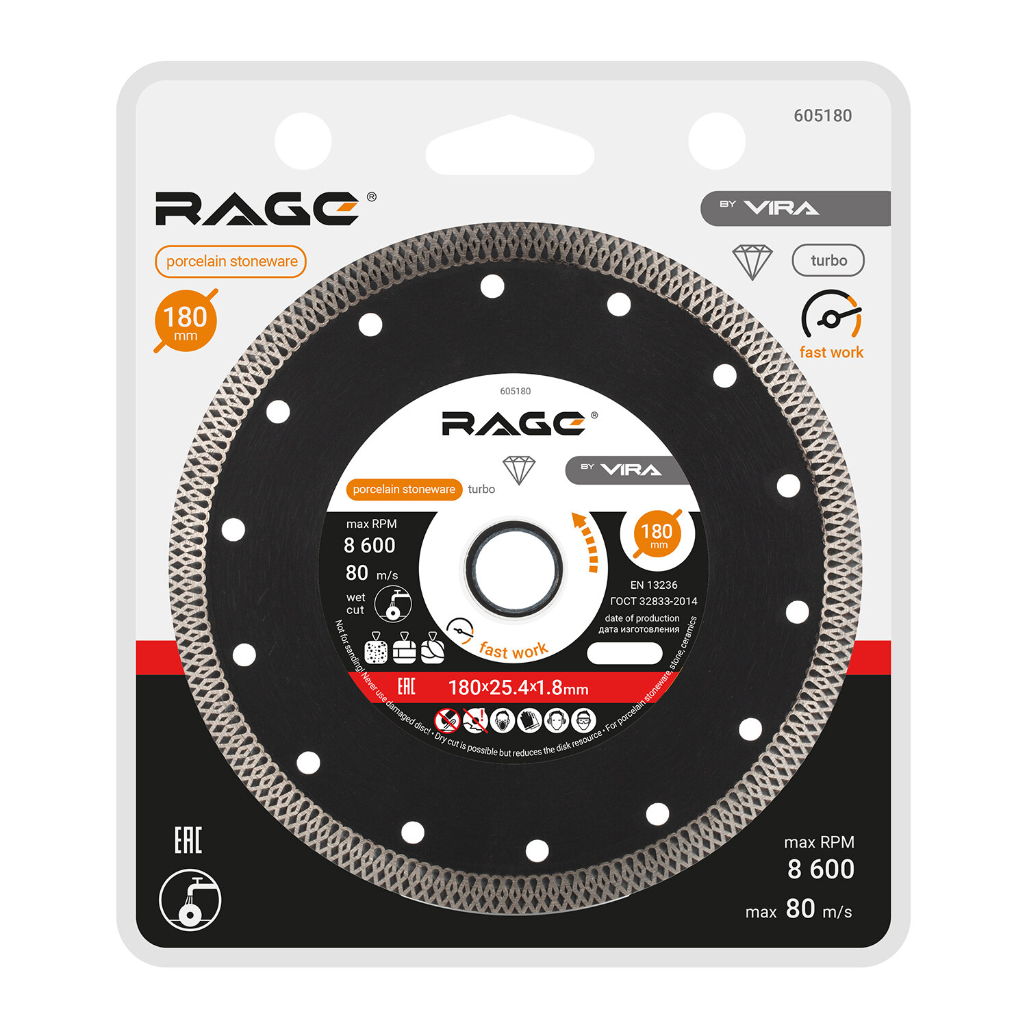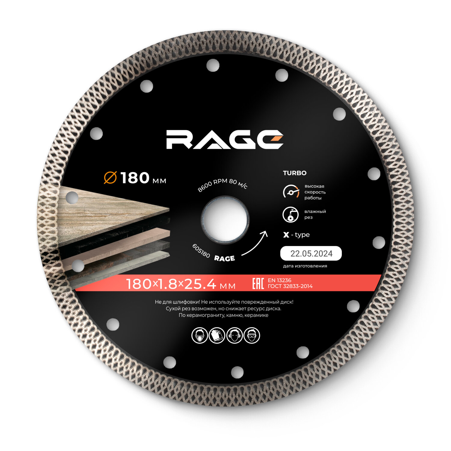 Диск алмазный по керамограниту тонкий 180 x 1.8 x 25.4 с адаптером 22.2 мм RAGE by VIRA интересное: