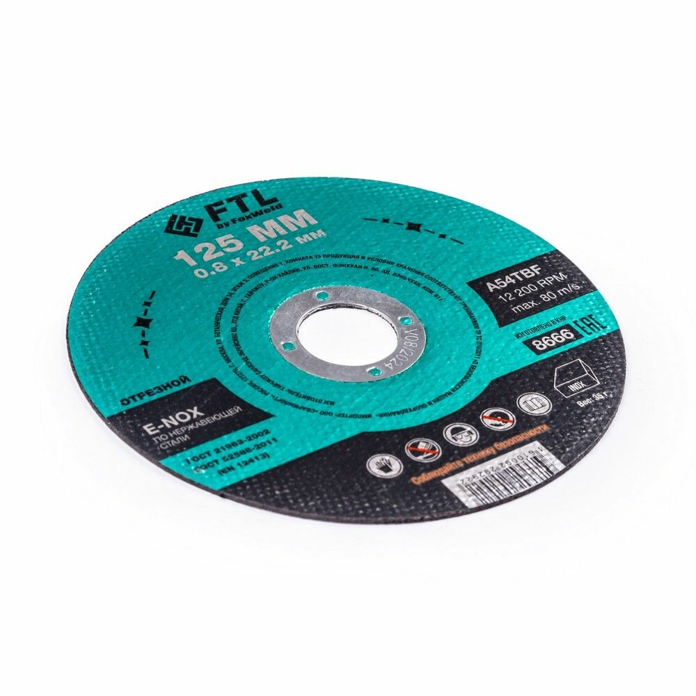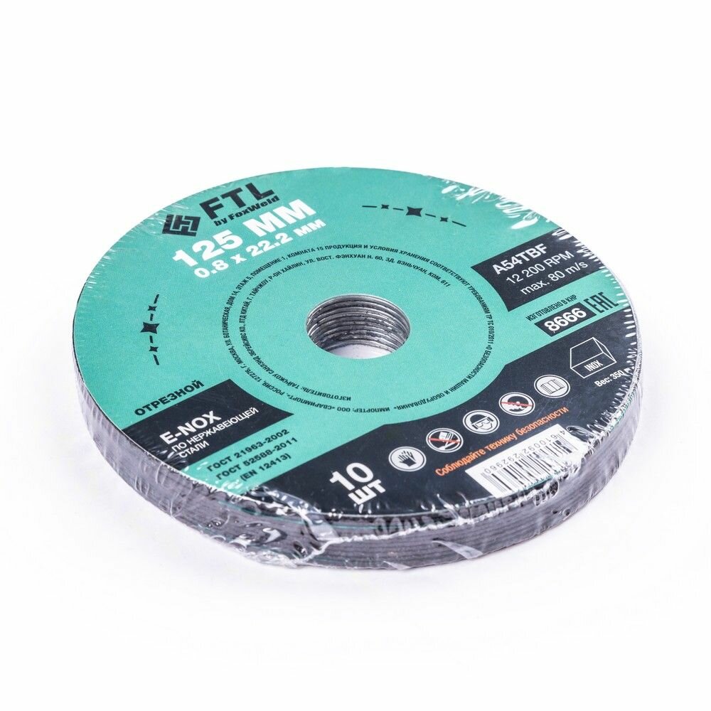 Foxweld Круг отрезной по нержавеющей стали FTL E-Nox 125 х 0,8 х 22,2 мм A54TBF, 10 штук