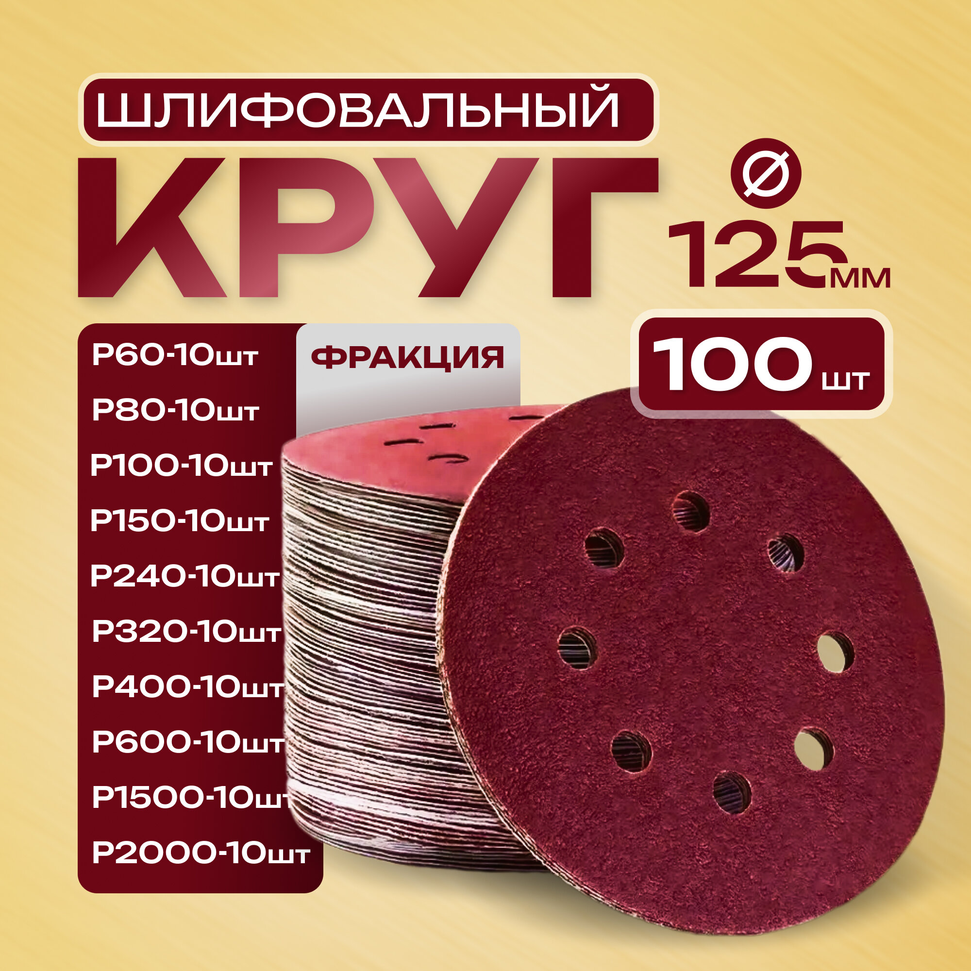 Круг шлифовальный RED D 125 мм P 100 на липучке 10 шт 8 отверстий