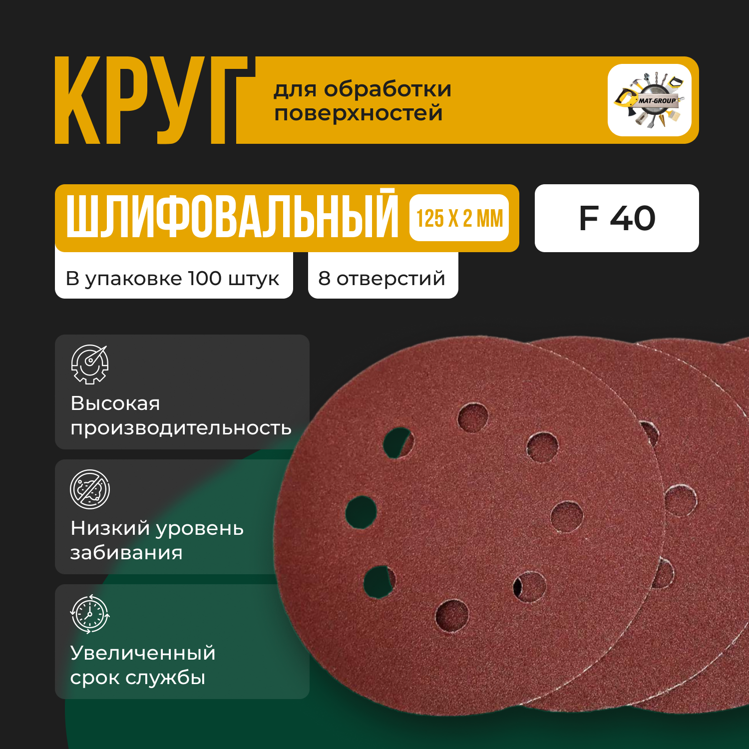 Купить Круг абразивный под липучку с отверстиями 125 мм; P40 100шт Шлифовальный круг с отверстиями 125мм Р40