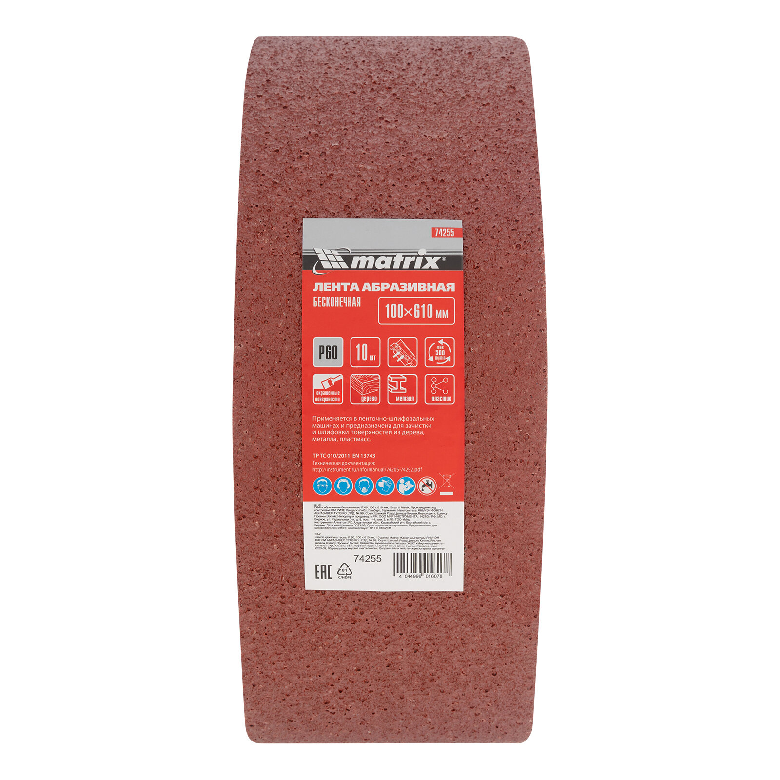 Купить Лента абразивная бесконечная, P 60, 100 х 610 мм, 10 шт Matrix