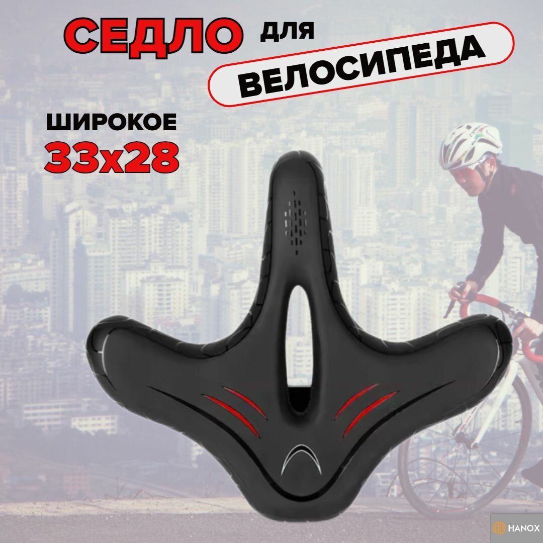 Седло велосипеда HANOX, унисекс, чёрное, амортизация, широкое интересное: