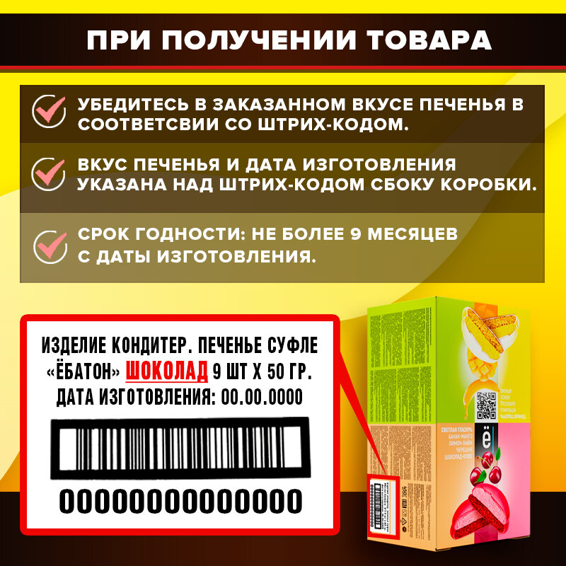 Протеиновое печенье Ёбатон суфле Ё|батон 50г вкус Шоколад