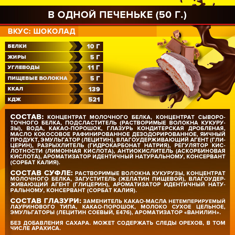 Протеиновое печенье "ё/батон" с белковым суфле 20% белка, со вкусом шоколада, 50гр., 9шт
