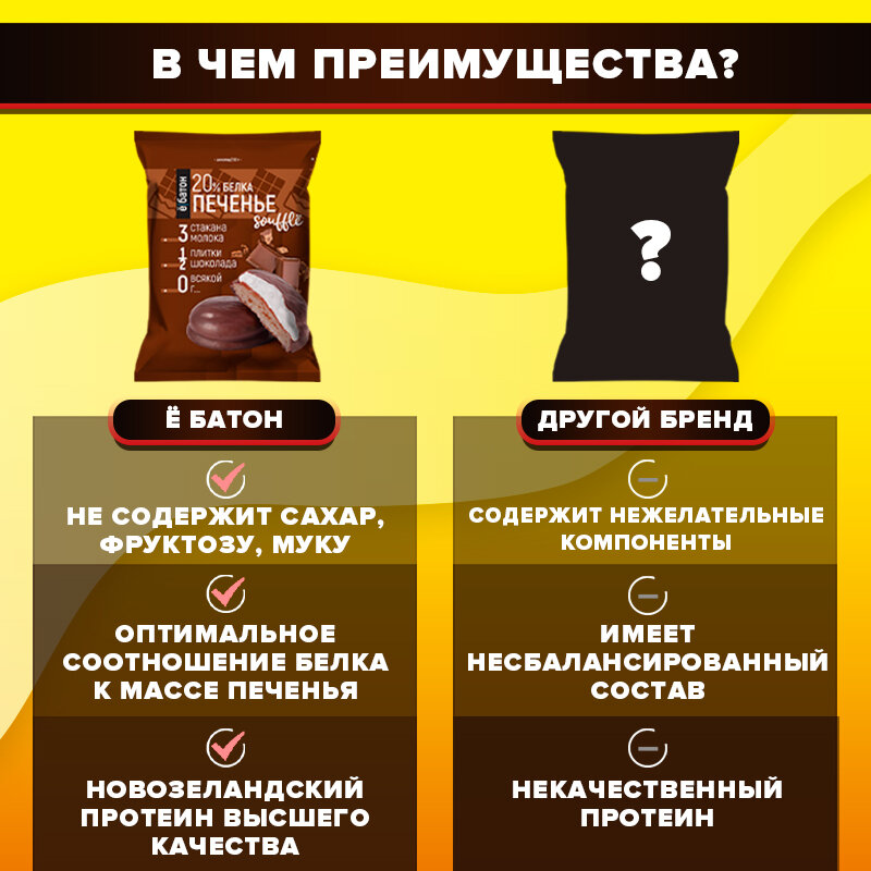 Протеиновое печенье "ё/батон" с белковым суфле 20% белка, со вкусом шоколада, 50гр., 4шт