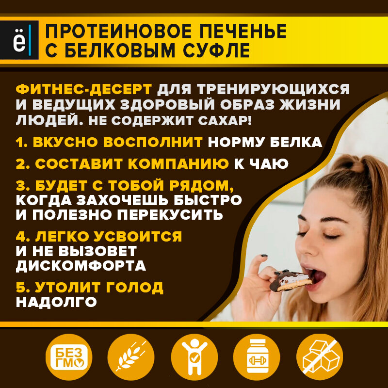 Протеиновое печенье ё|батон с белковым суфле, без сахара, без муки, 9 шт по 50 г Шоколад