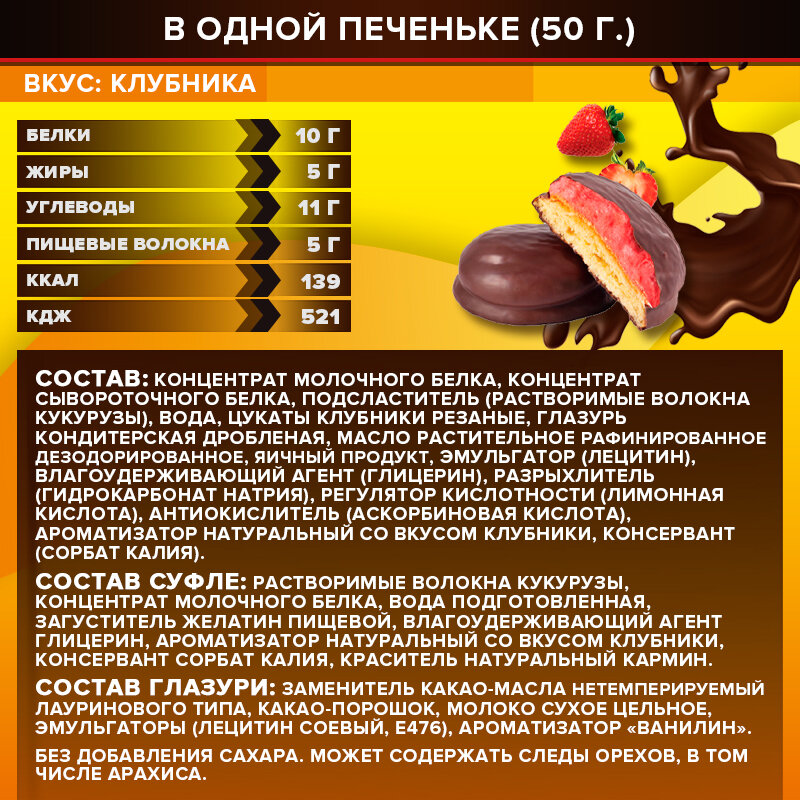 Протеиновое печенье "ё/батон" с белковым суфле 20% белка, со вкусом клубники, 50гр., 9шт