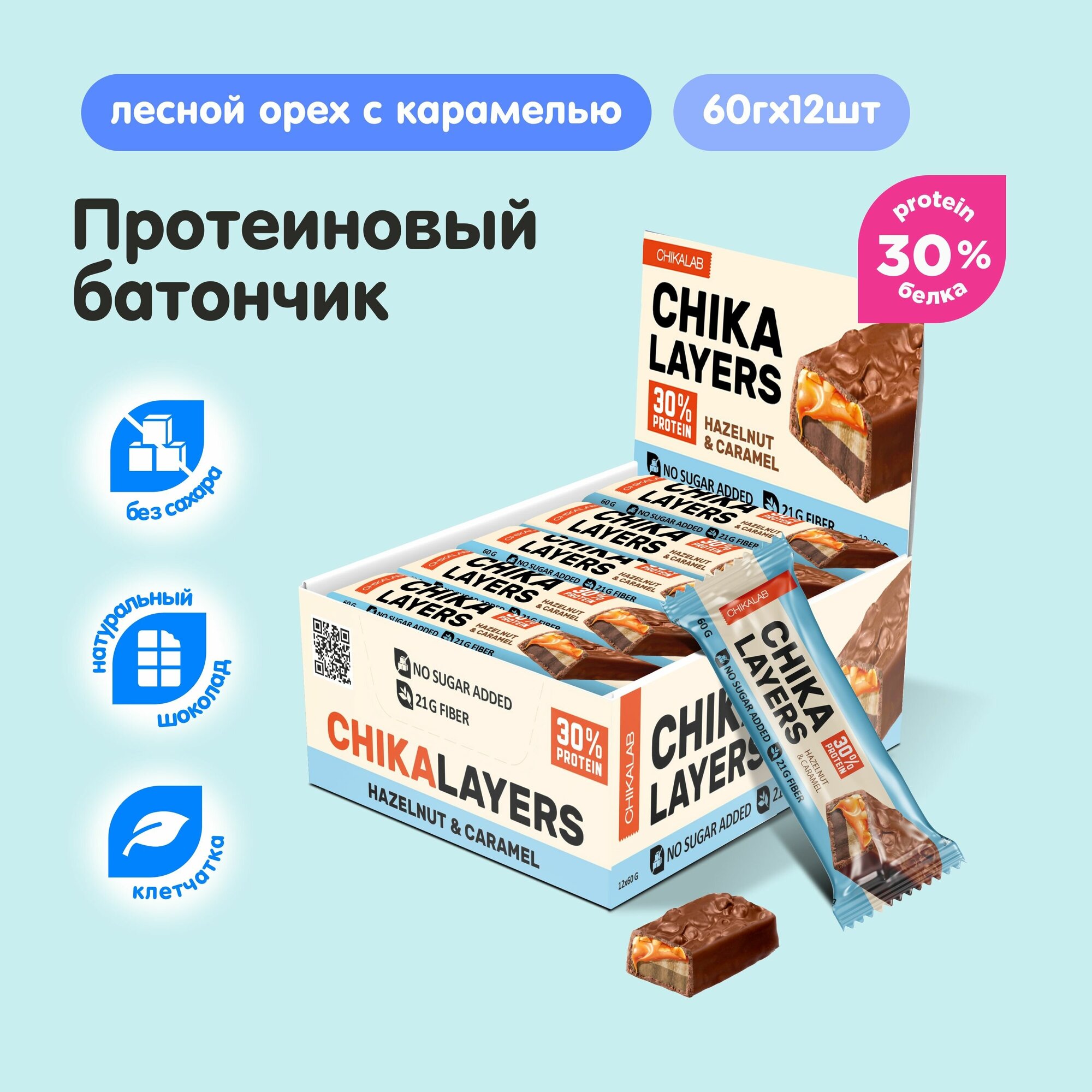 Протеиновый батончик в шоколаде CHIKALAB ChikaLayers, Фундук с карамелью, 20 шт по 60 г