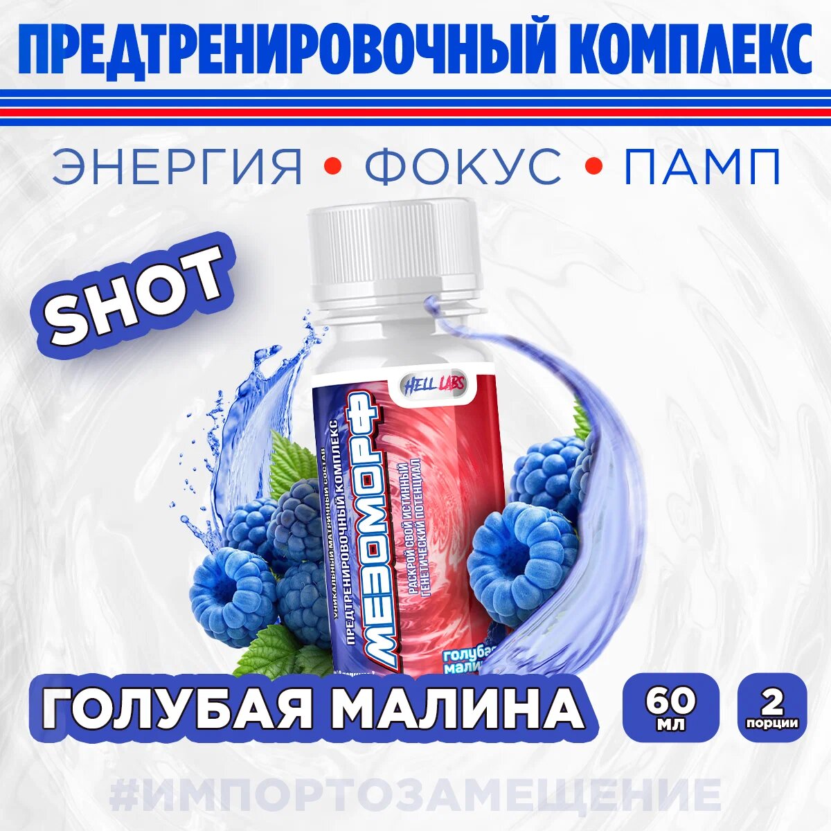 (6 шотов) "Hell Labs" - Мезоморф Предтреник 60мл (Голубая малина)