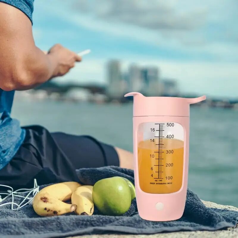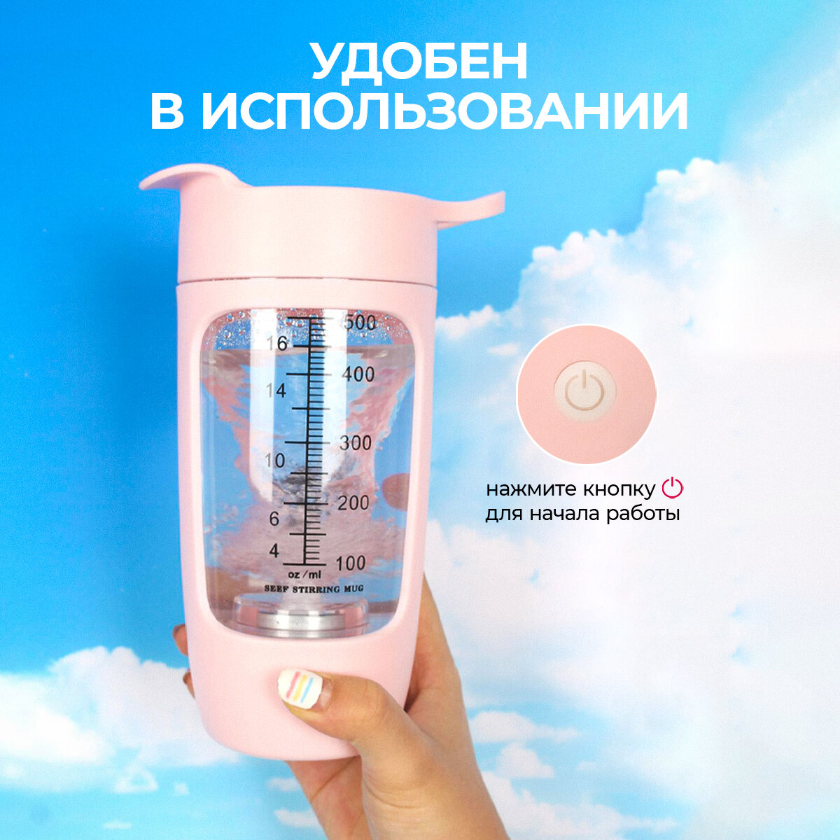 Шейкер XL электрический (розовый) для спортивного питания, шейкер для протеина с миксером (600 мл)