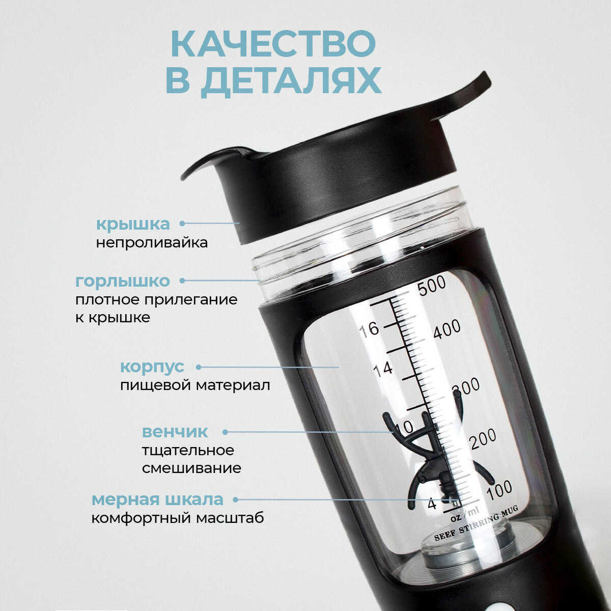 Купить Электрический шейкер для спортивного питания и протеина, XL-размер, 600 мл, черный цвет