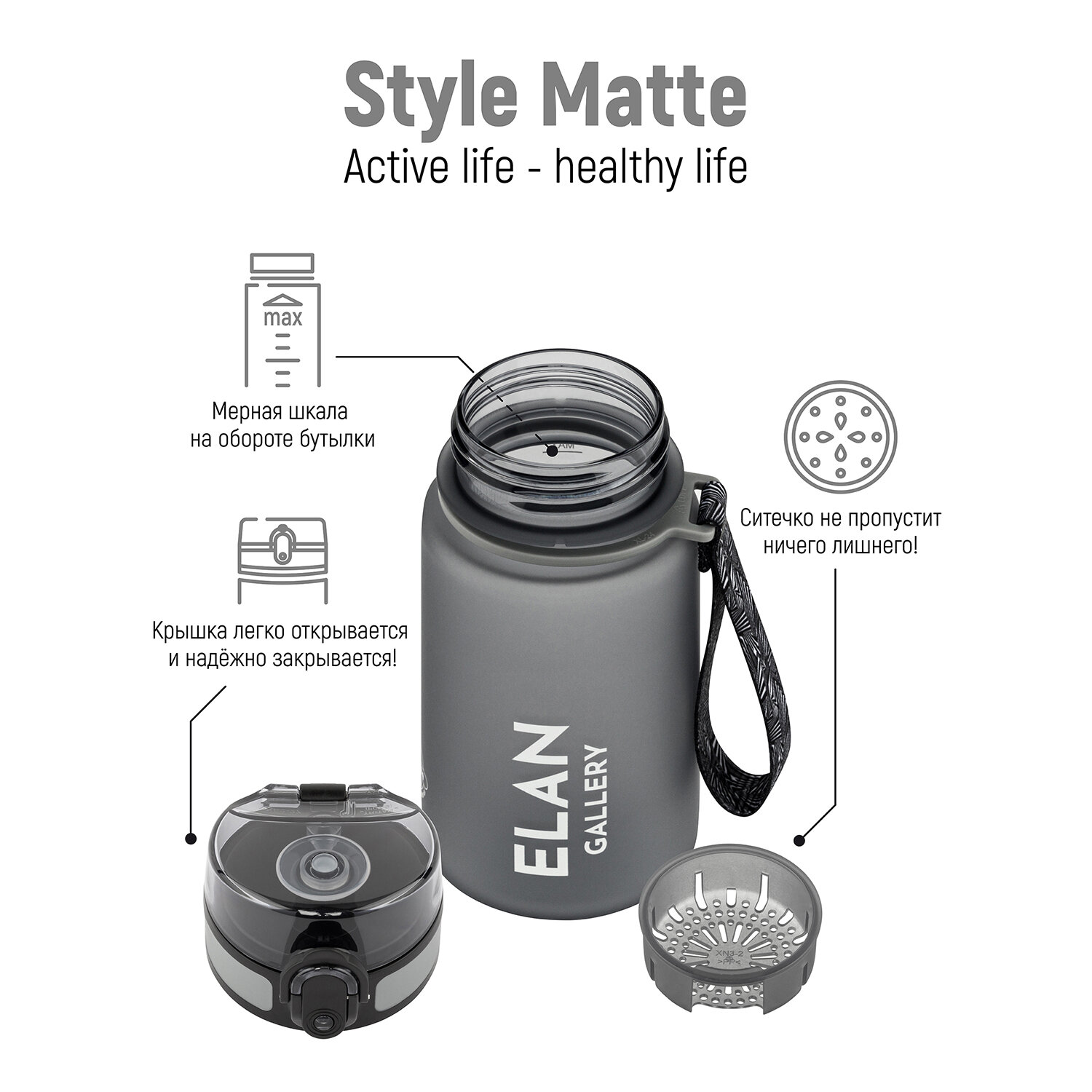 Бутылка для воды 350 мл 6,8х6,8х17 см Elan Gallery Style Matte, серая