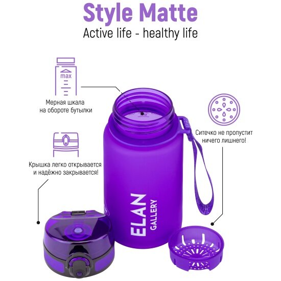 Купить Бутылка для воды Elan Gallery Style Matte лаванда, 350 мл