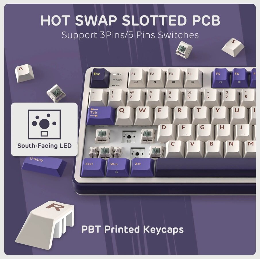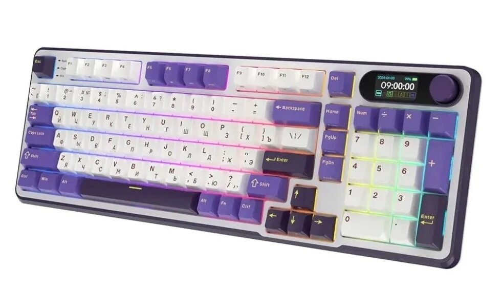 Беспроводная механическая клавиатура Royal Kludge RK-S98 (96%) цвет Taro Milk, RGB, Hot Swap, тактильные свитчи (RK Brown)
