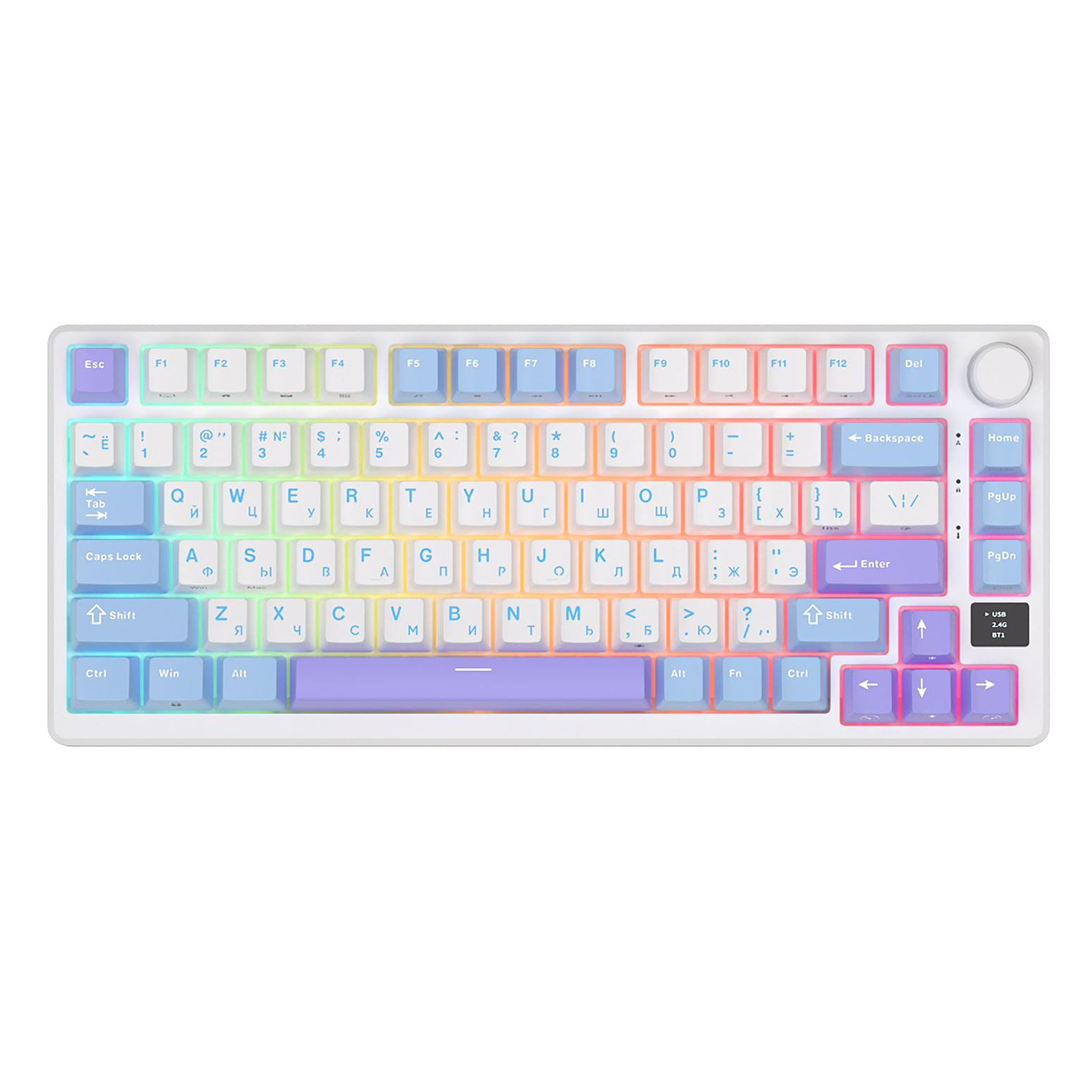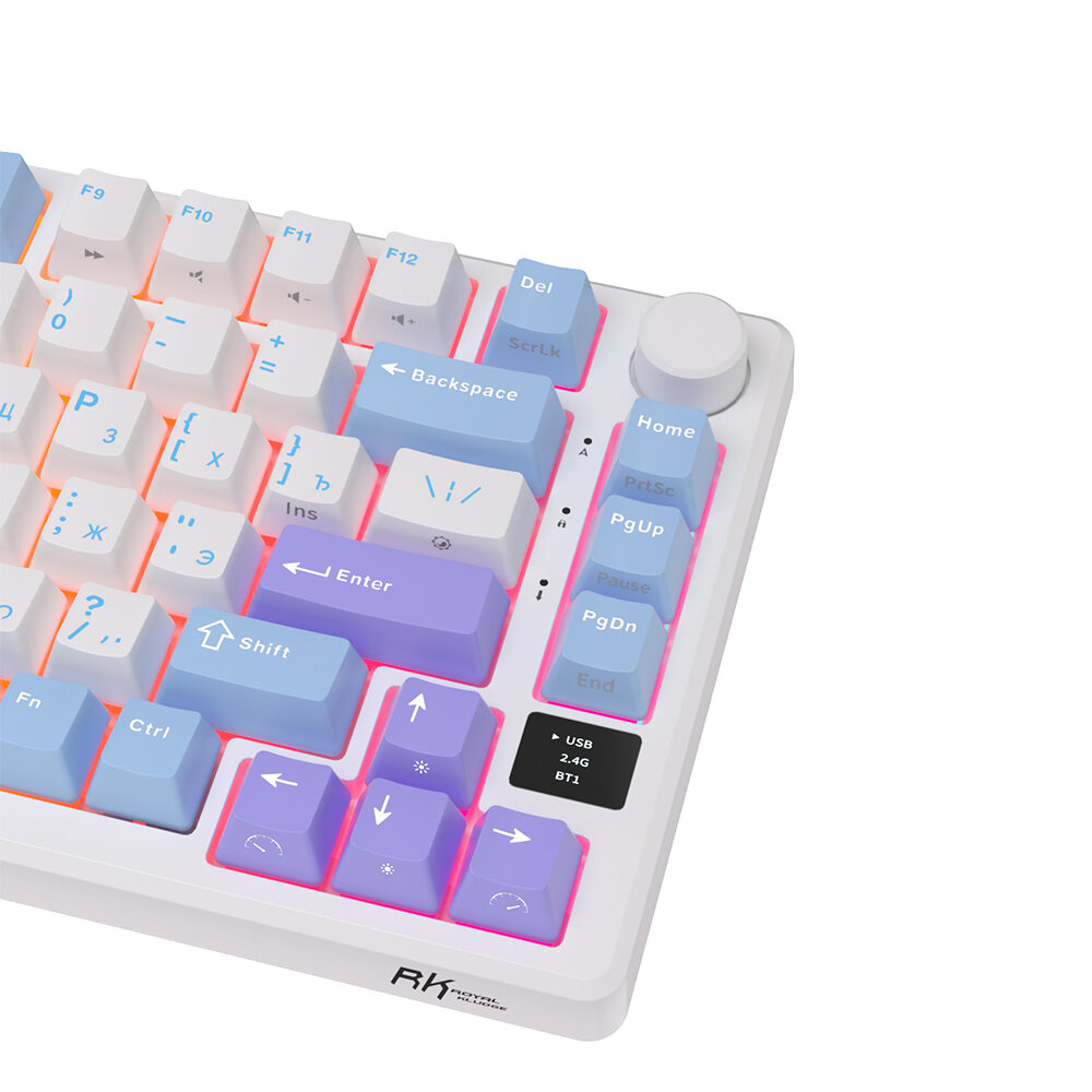 СохранитьКлавиатура Royal Kludge RK-M75 Taro milk (USB/2.4 GHz/Bluetоoth, RGB, Hot Swap, K silver switch) интересное: