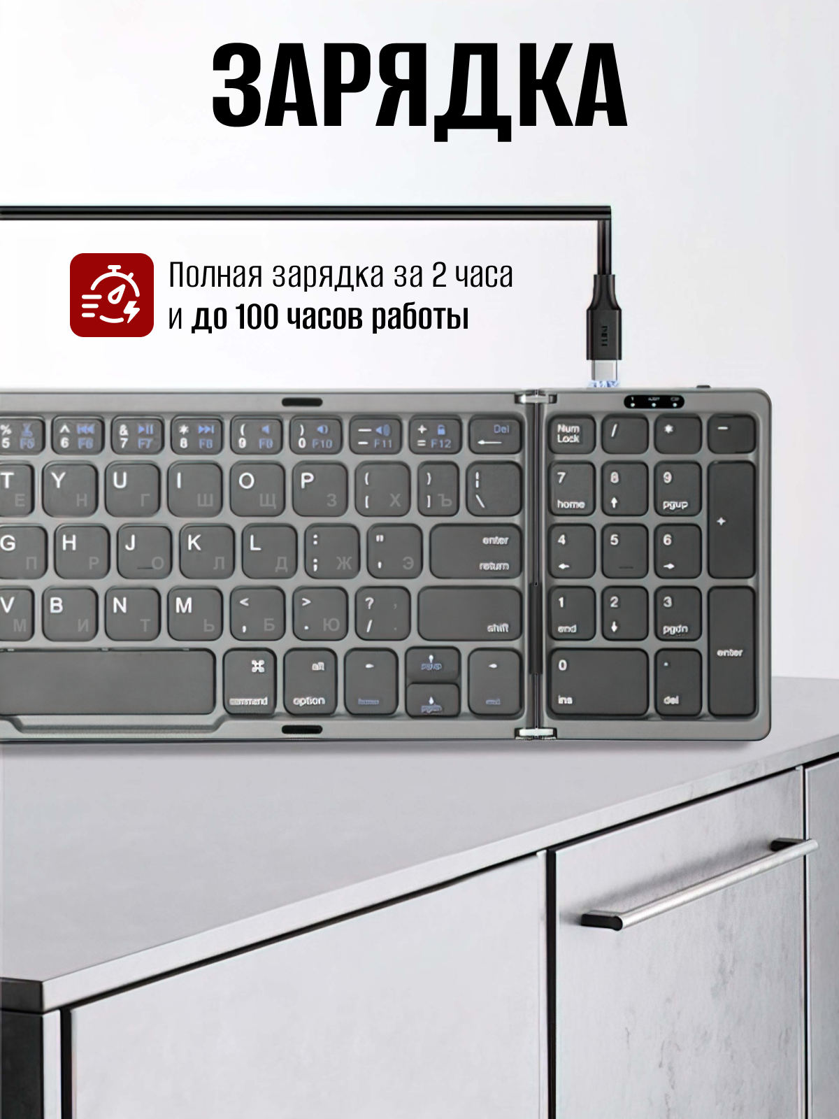Купить Тройная складная беспроводная мини клавиатура для мобильных устройств, серая