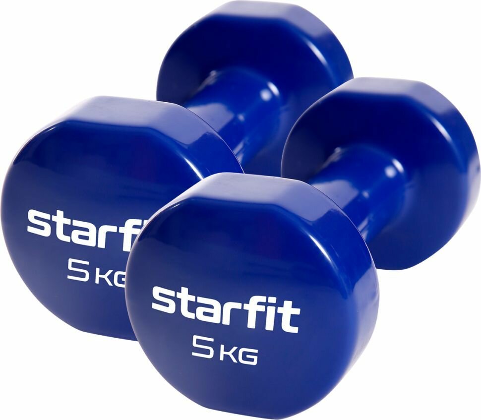 Гантели для фитнеса виниловые набор гантелей гантель STARFIT DB-101 5 кг, темно-синий, 2 шт