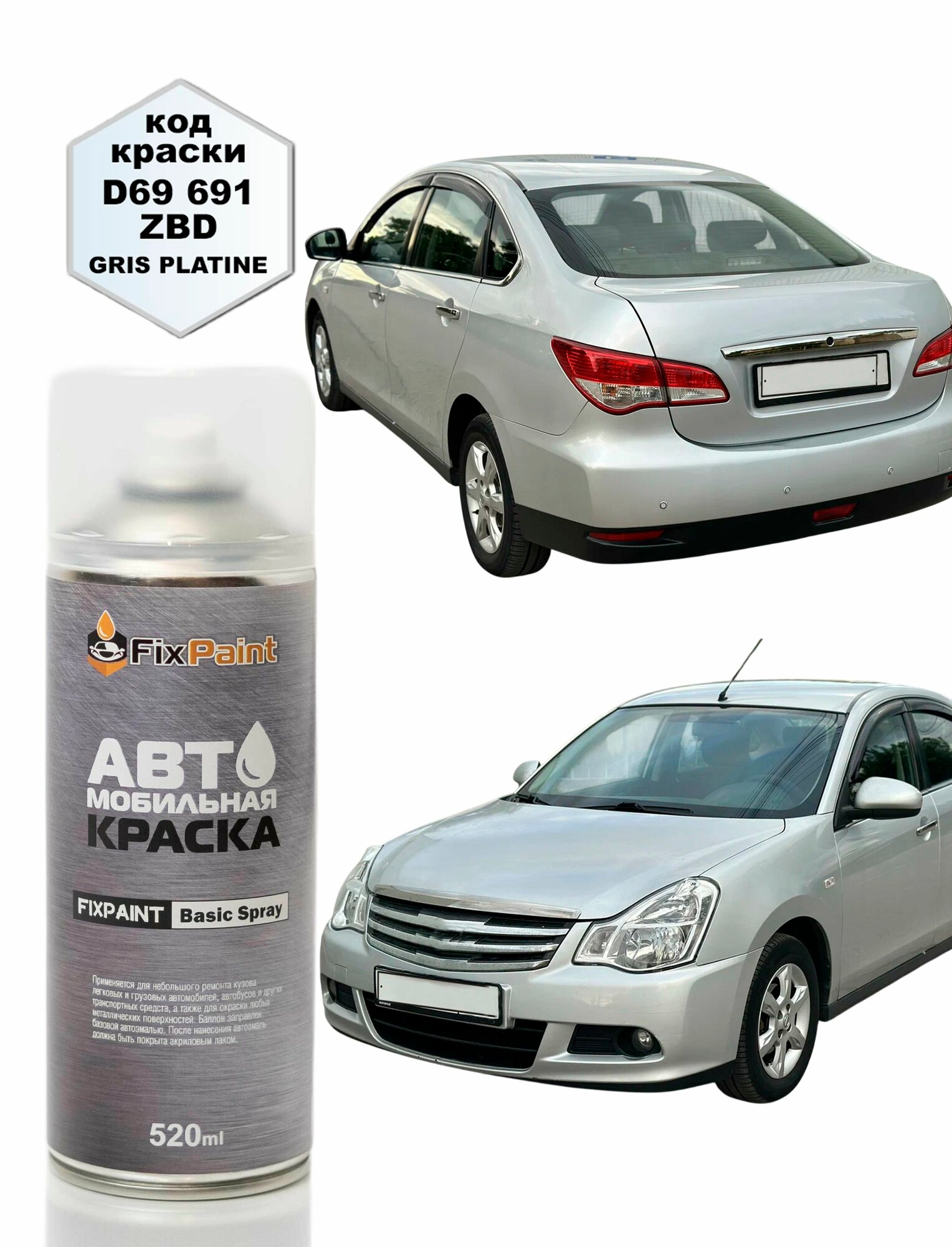 Купить Краска NISSAN ALMERA, код ZBD, 691, D69, SILVER, автомобильная эмаль FixPaint Spray в аэрозольном баллончике 520 мл