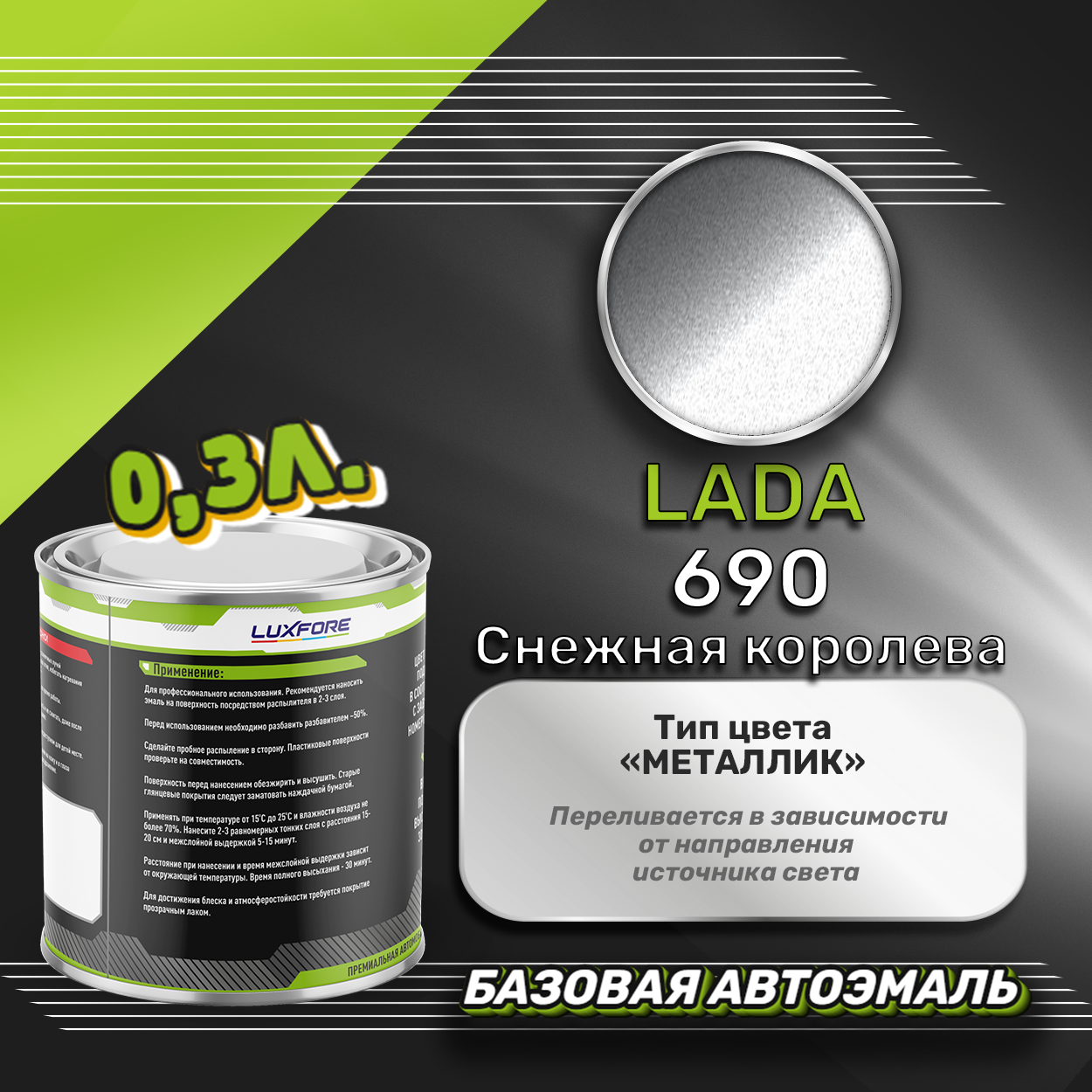 Купить Luxfore краска базовая эмаль LADA 690 Снежная королева 300 мл