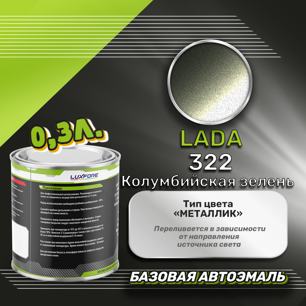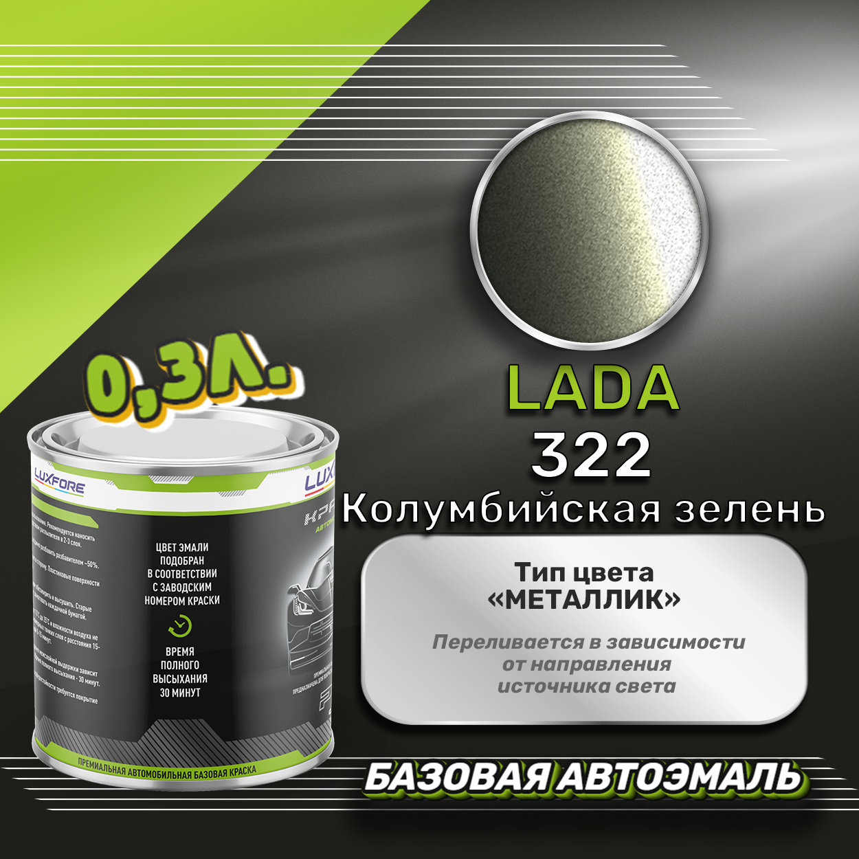 Купить Luxfore краска базовая эмаль LADA 322 Колумбийская зелень 300 мл