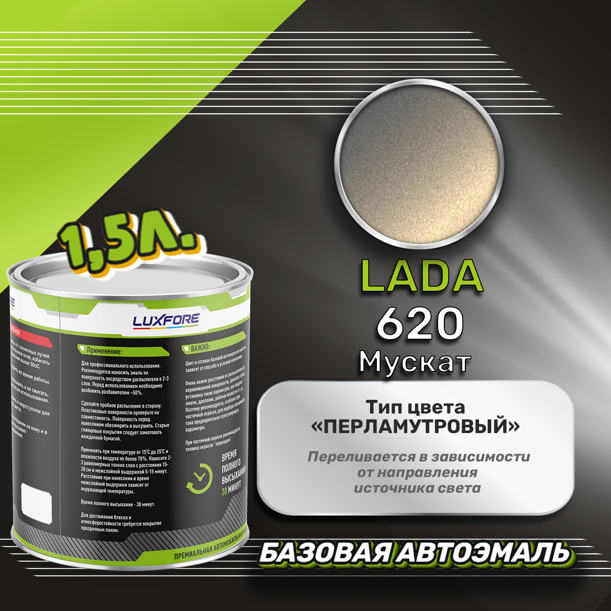 Купить Luxfore краска базовая эмаль LADA 620 Мускат 1500 мл