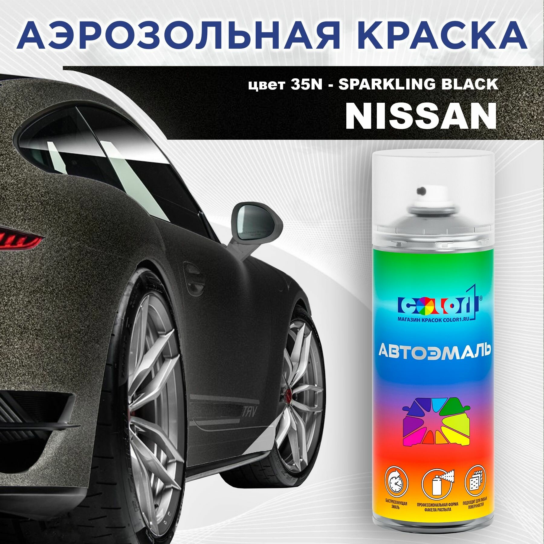 Аэрозольная краска COLOR1 для NISSAN, цвет 35N - SPARKLING BLACK