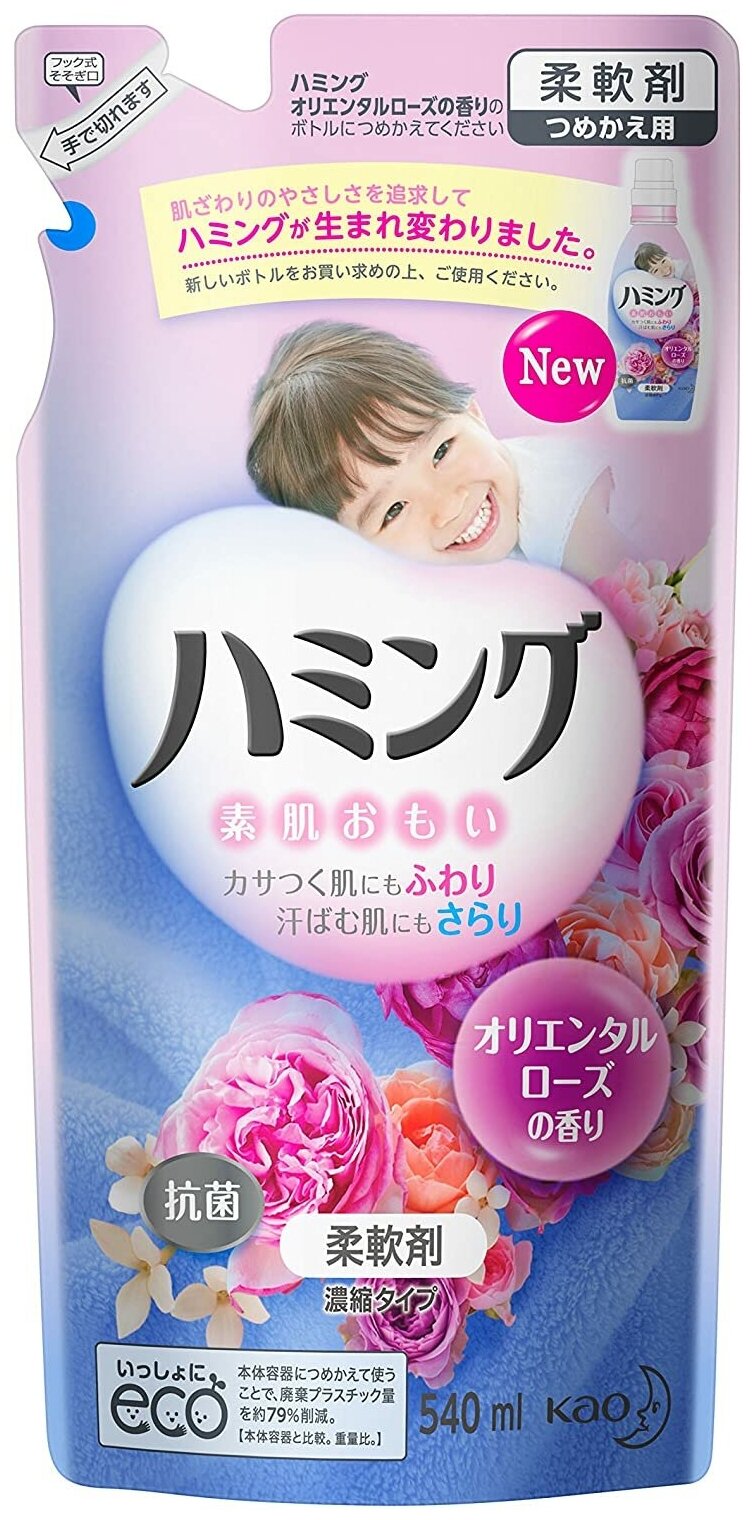 KAO Кондиционер-ополаскиватель Humming для белья концентрат, аромат восточной розы 540 мл, мягкая упаковка
