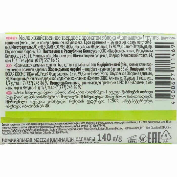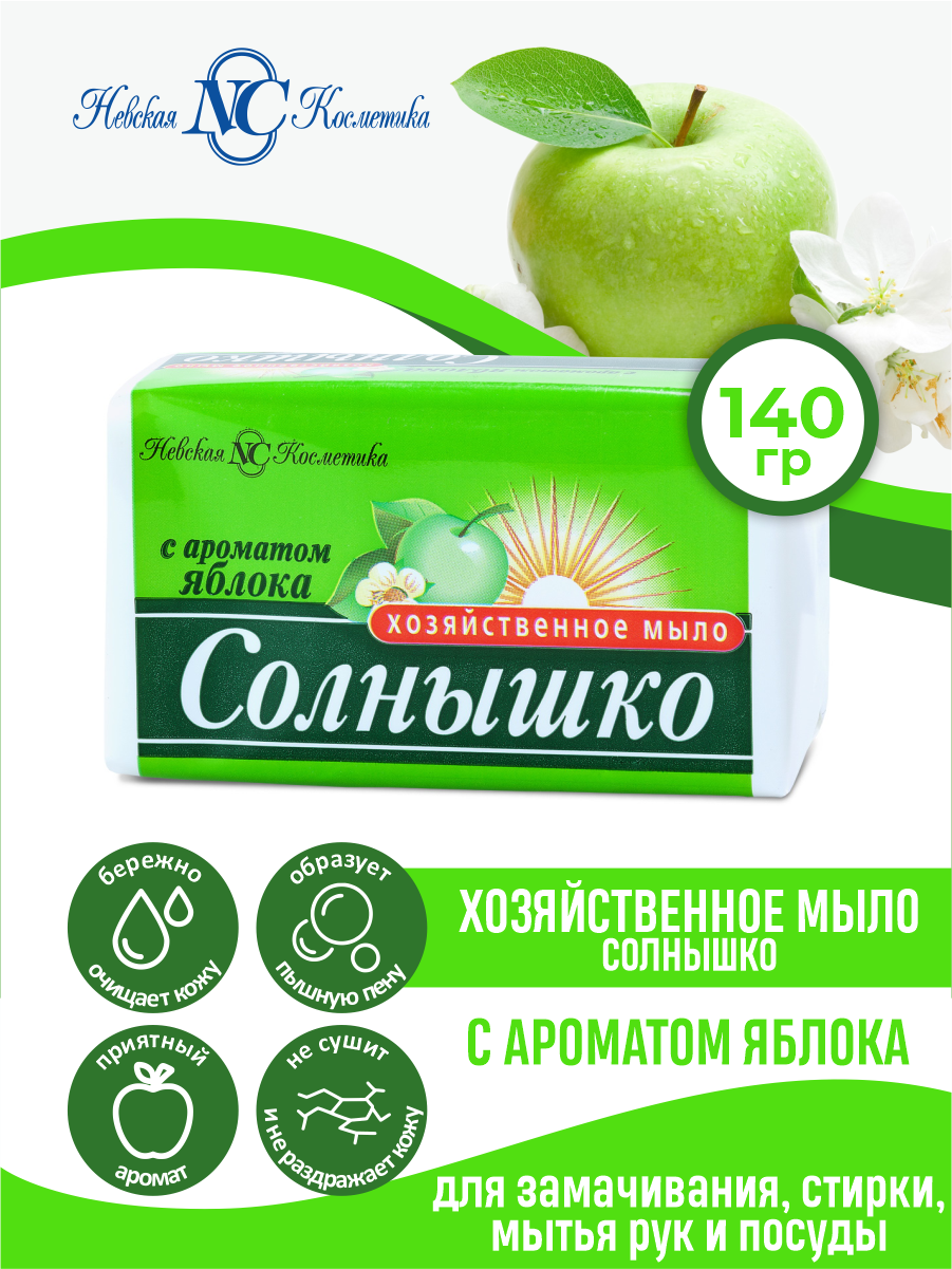 Купить Хозяйственное мыло Невская Косметика Солнышко с ароматом яблока 0.14 кг