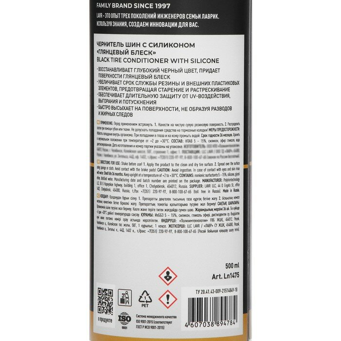 Купить Чернитель шин глянцевый 500 мл LAVR Ln1475