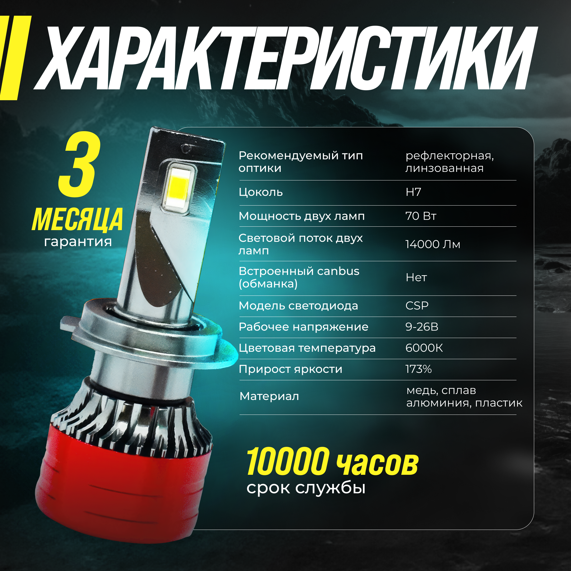 Лампы H7 LED-K9, светодиодные, для автомобилей, холодный белый свет, 6000K интересное: