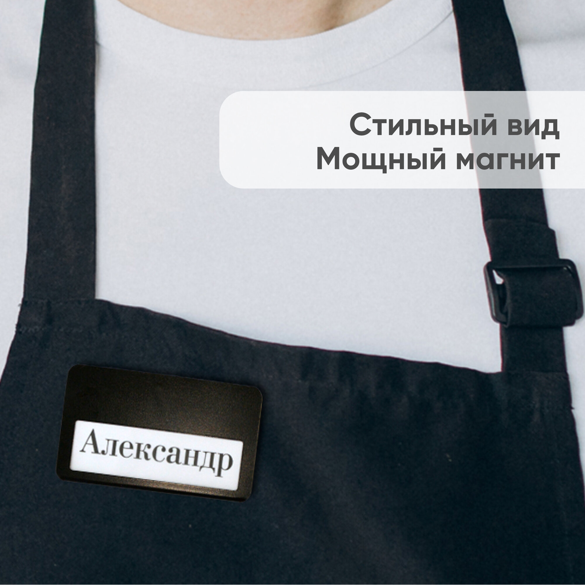 Бейдж на магните БейджМастер горизонтальный с окном медицинский, для сотрудника, школьника , размер 70x40 мм, цвет черный антибликовый, набор 10 шт