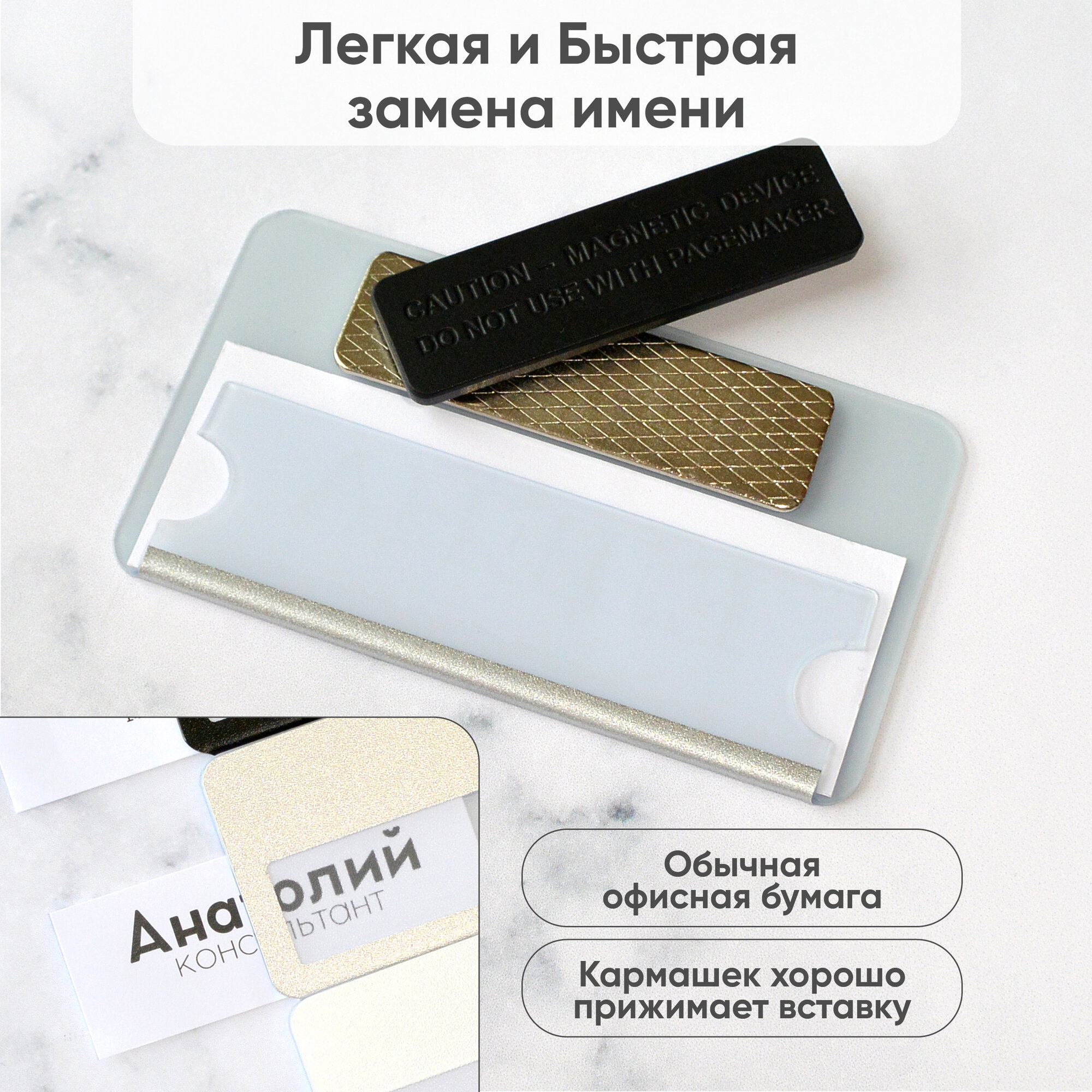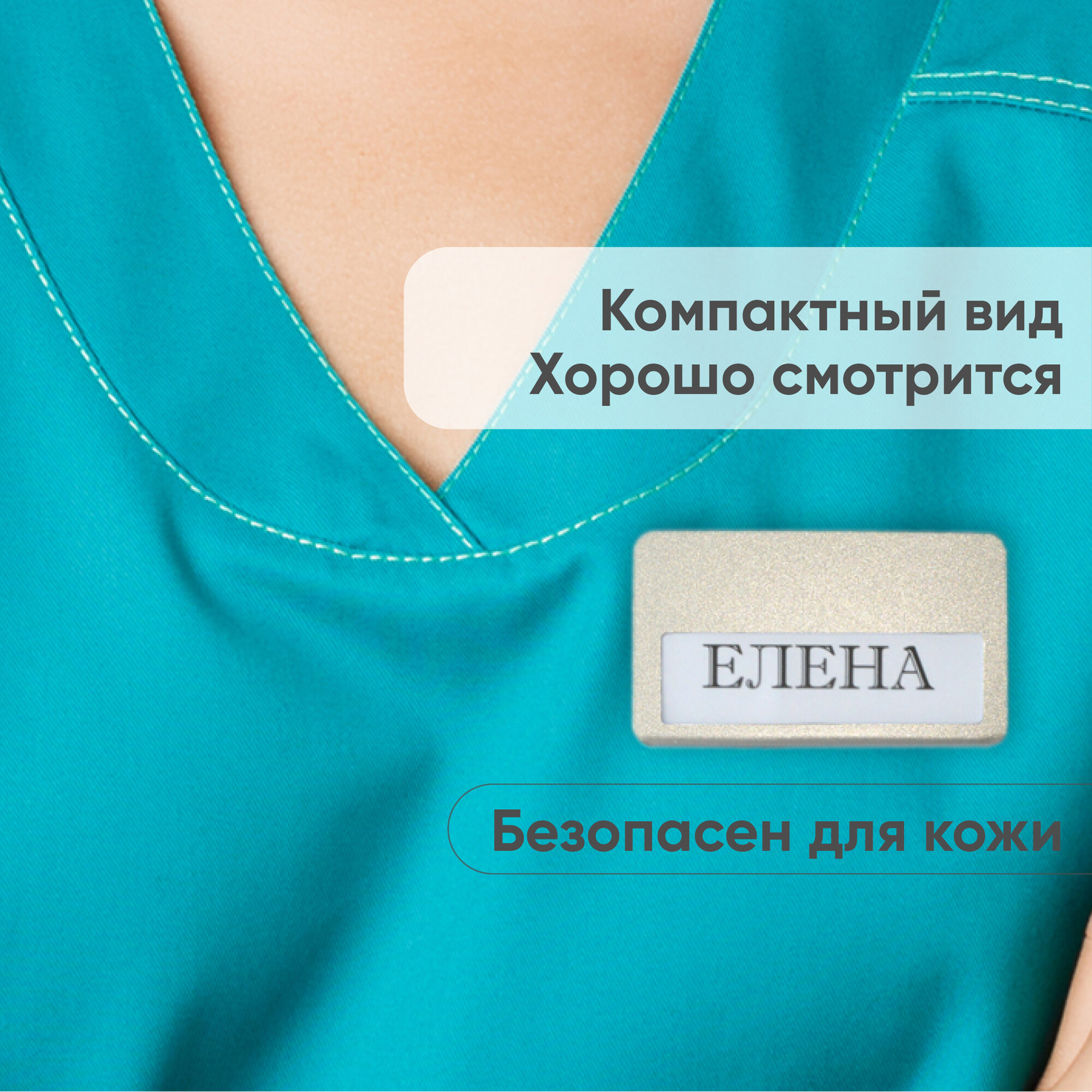 Бейдж на магните БейджМастер горизонтальный с окном медицинский, для сотрудника, для школьника , размер 70x40 мм, цвет серебро искристое, набор 10 шт