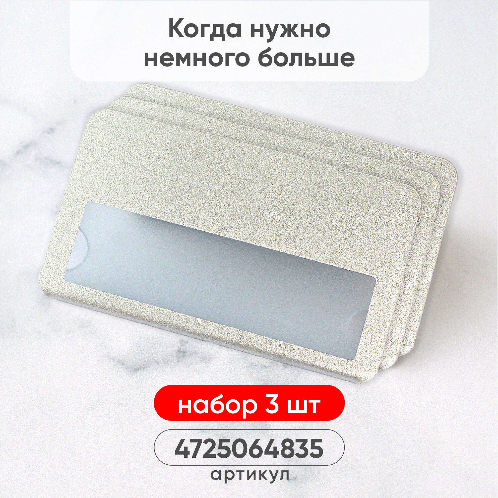 Бейдж на магните БейджМастер горизонтальный с окном медицинский, для сотрудника, для школьника , размер 70x40 мм, цвет серебро искристое, набор 3 шт