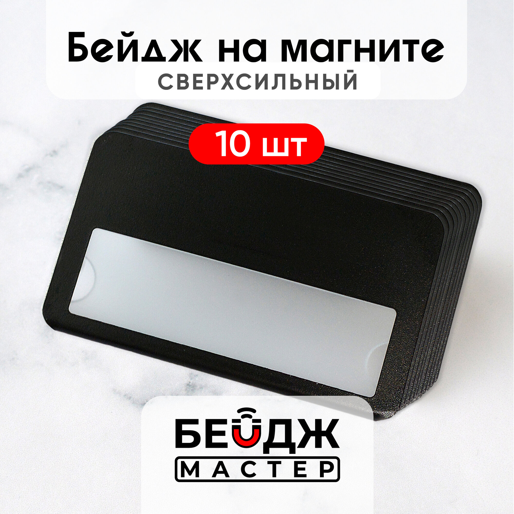 Бейдж на магните БейджМастер горизонтальный с окном медицинский, для сотрудника, школьника , размер 70x40 мм, цвет черный антибликовый, набор 10 шт