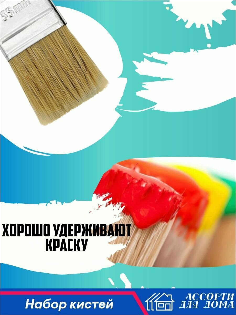 Кисти малярные флейцевые 3 шт, 50 мм, 35 мм, 25 мм, натуральная щетина / кисти плоские для краски интересное: