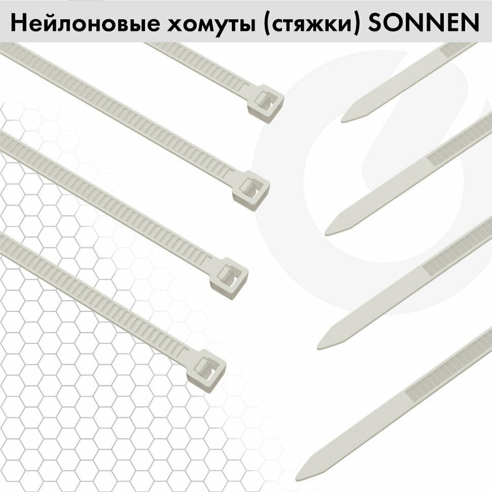 Стяжки Sonnen нейлоновые сверхпрочные, белые, 150 шт