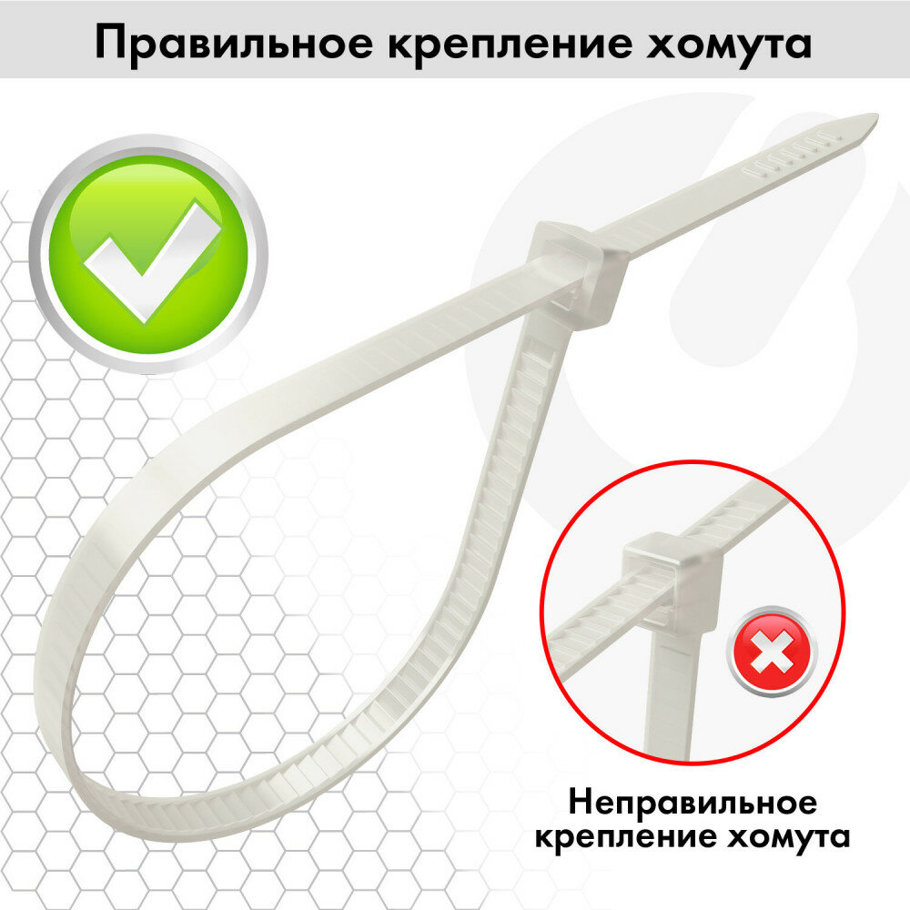 Стяжка (хомут) нейлоновая сверхпрочная POWER LOCK, 3.6x250мм, комплект 100шт, белая S