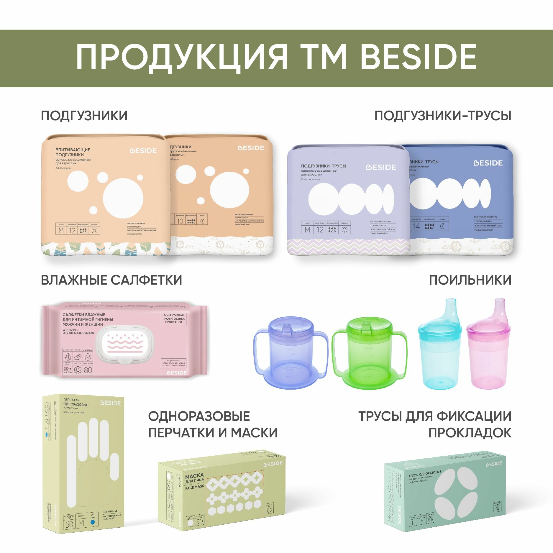Подгузники для взрослых BESIDE Optima Super, размер M, упаковка 10 шт, обхват талии до 120 см, одноразовые впитывающие гелевые памперсы, без рисунка