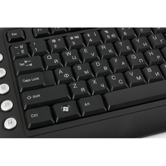 1. Алфавит LAT и РУС одного цвета. 2. Нет подсветки (но за такую цену...). 3. Нет индикации кл. Num Look. 4. Мышь для маленькой руки. |