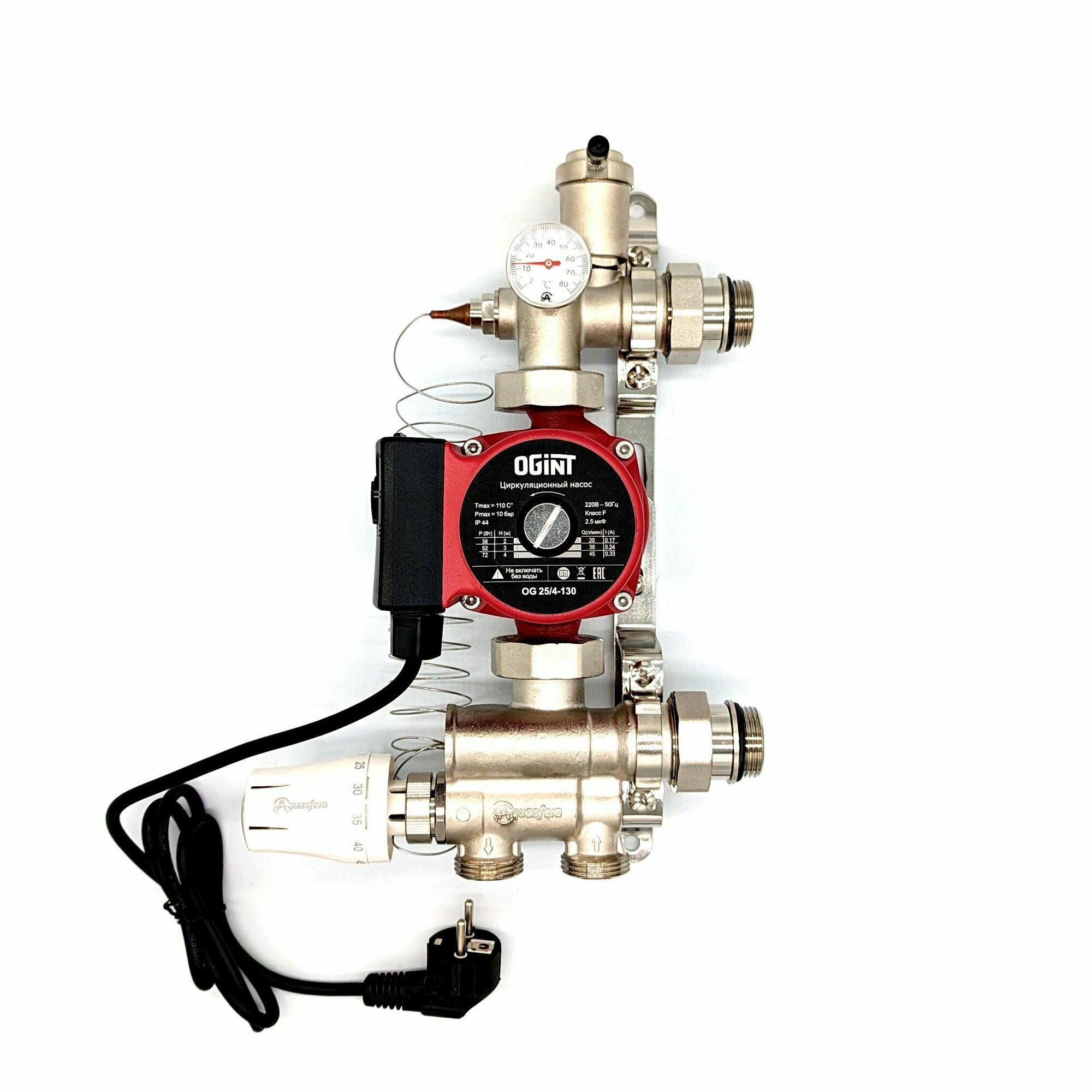 | Комплектация | воздухоотводчик / заглушка / кронштейны / насос / расходомер / термометр / термостатический клапан |