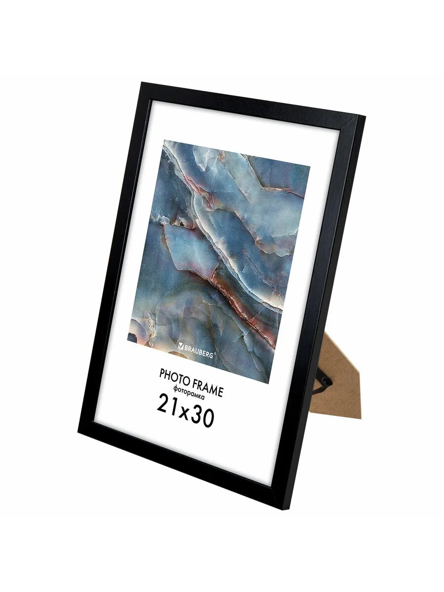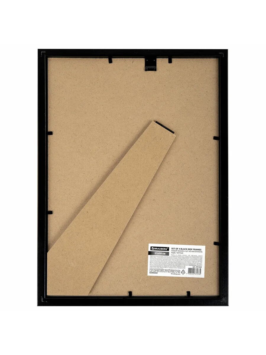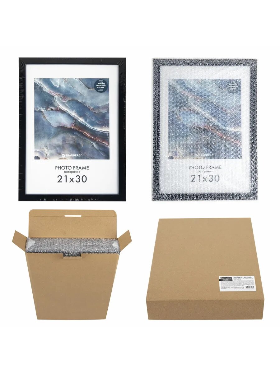 Рамка (фоторамка) для фото, фотографий, картин, грамот на стену А4 21х30 см небьющаяся, Комплект 4шт, багет 16 мм Мдф, Brauberg Basic, черная, 391259