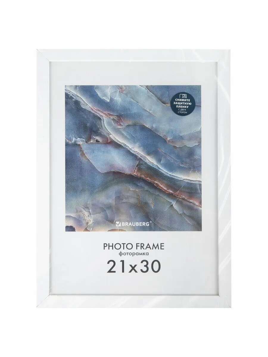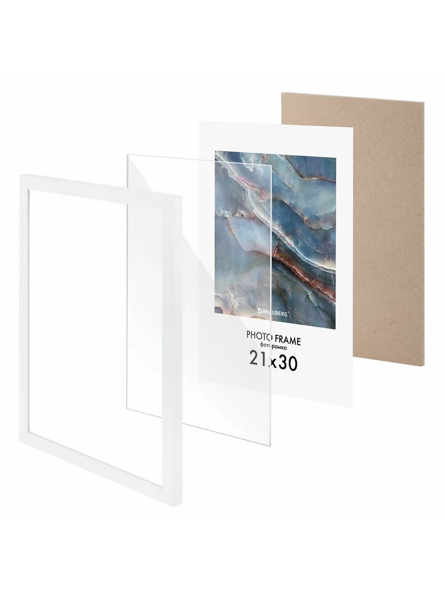 Рамка (фоторамка) для фото, фотографий, картин, грамот на стену А4 21х30 см небьющаяся, Комплект 3шт, багет 29 мм, Мдф, Brauberg Basic, белая, 391260