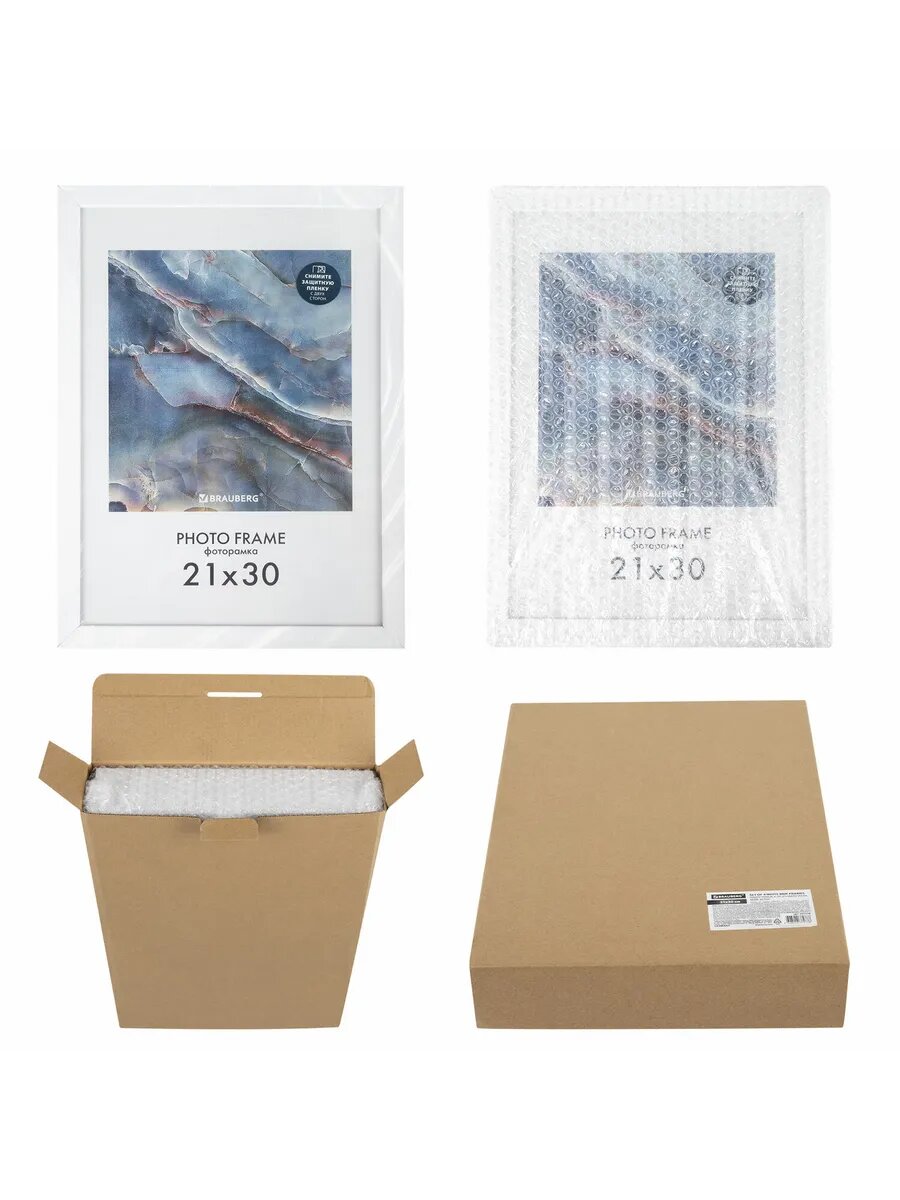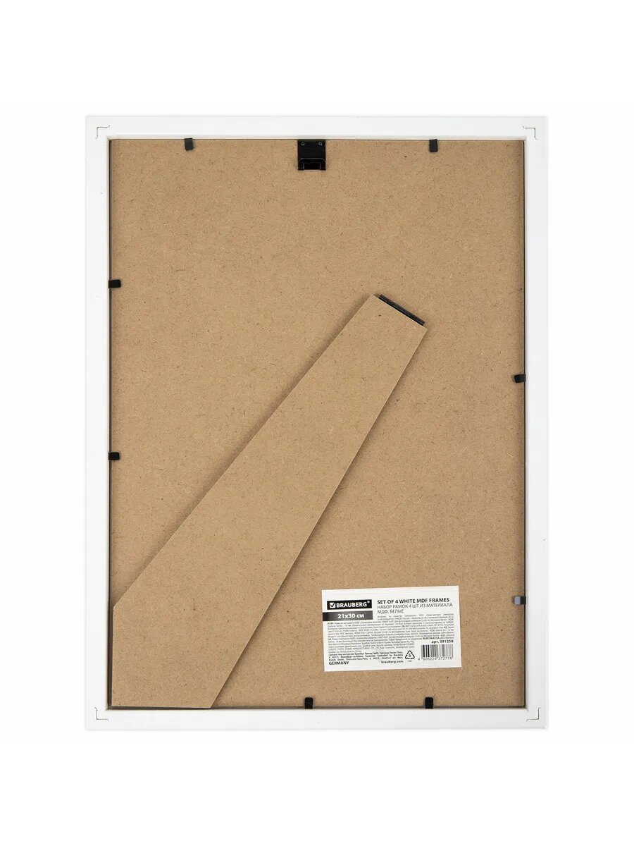 Рамка (фоторамка) для фото, фотографий, картин, грамот на стену А4 21х30 см небьющаяся, Комплект 4шт, багет 16 мм, Мдф, Brauberg Basic, белая, 391258