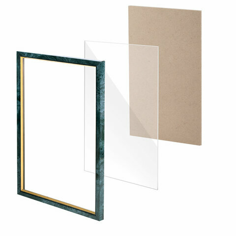 Рамка оформительская Brauberg 21*30 см, пластик, багет 15 мм, HIT, зеленый мрамор с позолотой, стекло (390706)