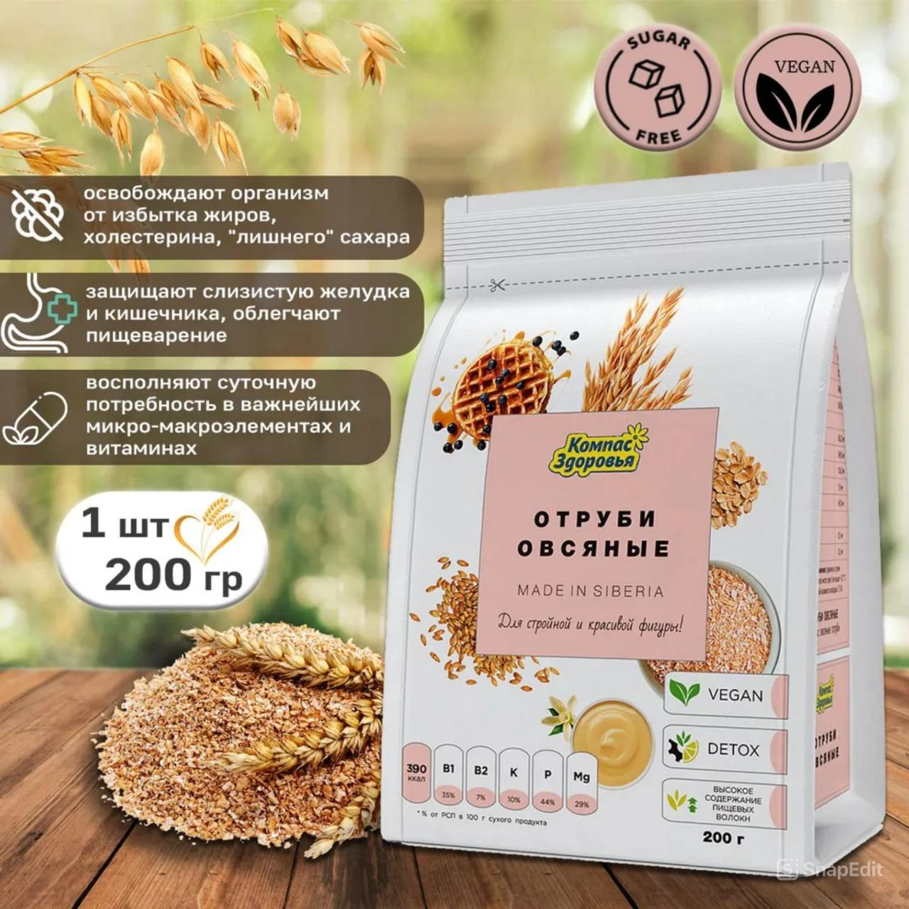 Отруби овсяные, 200 г Компас Здоровья интересное: