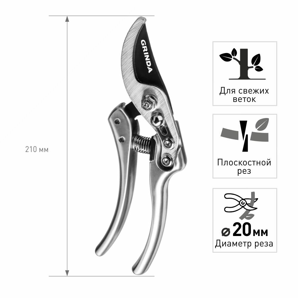 GRINDA 210 мм, с алюминиевыми коваными рукоятками, плоскостной секатор 423421