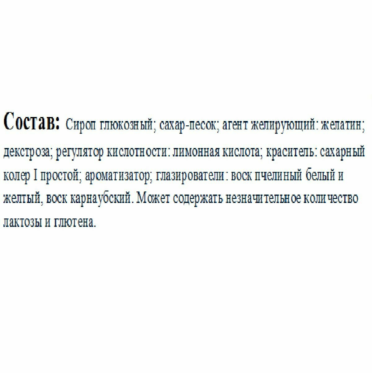 | Состав | глюкозо-фруктозный сироп; сахар; пшеничная мука; подкислитель: яблочная кислота, лимонная кислота; декстроза; ароматизатор; краситель сульфит аммония карамель; антиоксидант: аскорбиновая кислота; токоферол-содержащие экстракты |