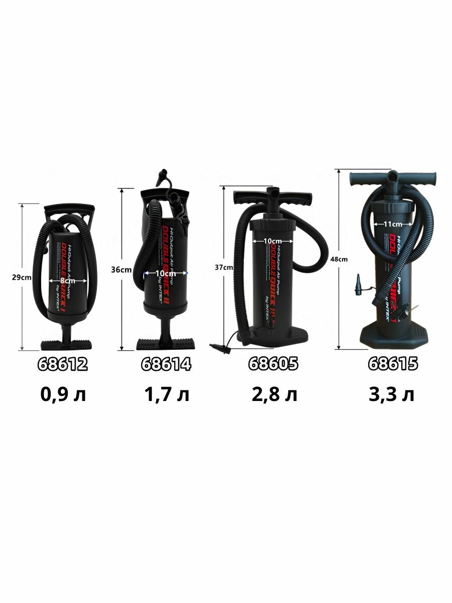 Насос ручной Intex Double Quick II, для матрасов, лодок и бассейнов, чёрный, 36см, 1.7л