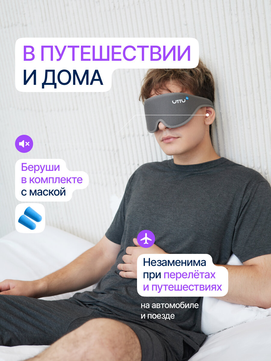 Маска для сна UTTU, 1 шт., серый меланж интересное: