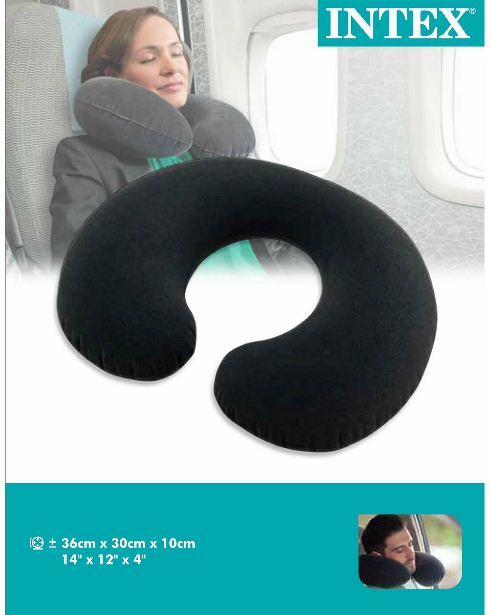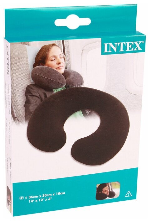 Подушка надувная для шеи INTEX "Дорожная" 36x30x10 см велюр 68675